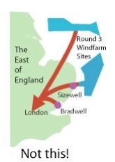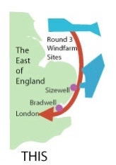 bringing the power from the new generators ACROSS East Anglia to London.