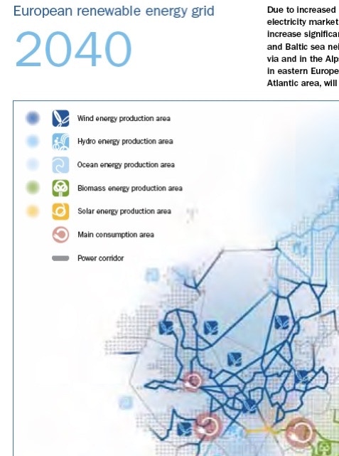This Europe wide energy industry dominated organisation wants to see a Europe wide renewable energy grid that deals with the intermittency of wind and other renewable energy generation, and importantly for them, brings a pan-European renewable energy market into being. The economic value of this development would be immense for all concerned. But sadly, this organisation sees people like us who want an energy system without all of the environmental detriment pylons bring as nimby's, seeing us as an obstacle to development. On their web site, they have rather cleverly blurred some maps of the enlarged grid they envisage for Europe and importantly for us, the UK. We include here their map for 2040 which shows grid enhancements(?) that will bring renewable energy from the sea and land areas to the west of us, across England, through East Anglia and on to export points to the European mainland.