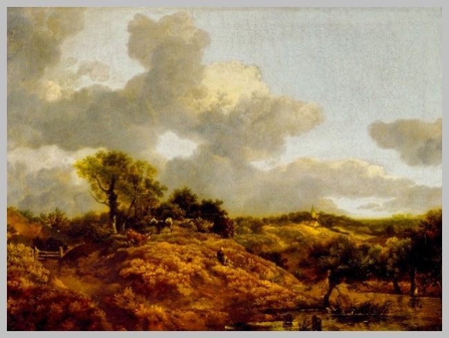 Gainsborough painted both as his day job and for the love of it: commissioned, fee earning portraits for others, landscapes for himself. Just before the time he painted Wooded Landscape, he was commissioned to paint the famous portrait "Mr & Mrs Andrews", reproduced here.