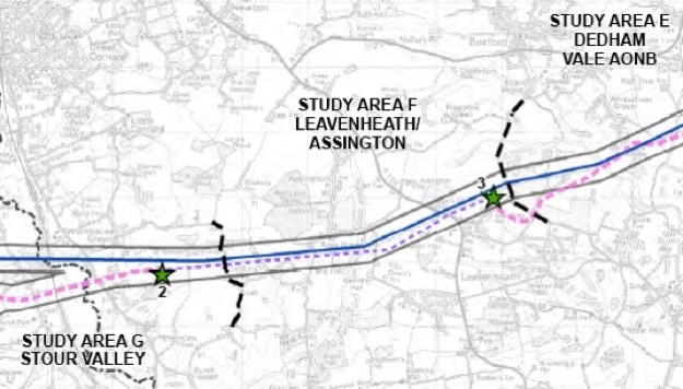 The same reasoning applies to the views west of the existing AONB. Moving the sealing end compound away from the valley side would prospectively place two sealing end compounds in NG Area F (Assington & Leavenheath area) which is set on high ground where such compounds and pylons would be visible over great distances.