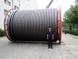 This man standing in front of a 400kV XLPE underground cable drum gives a sense of the challenge that surrounds its handling and installation
