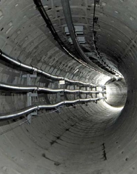 The picture (right) shows a three-meter diameter bored concrete lined tunnel containing a new 400kV cable system with space for a future 2nd 400KV system on other side of the tunnel. This type of installation has been used in North London Ring from St Johns Wood to Elstree, a total length of 20 Km and the Olympic Park area.